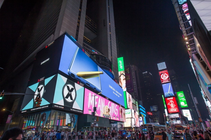Two Galaxy Note9 billboards light up the bustling Times Square in New York