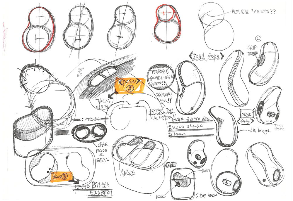 ▲ Sketches done by designer Youngsang Jang that show how much effort was put into creating the new earbud form factor