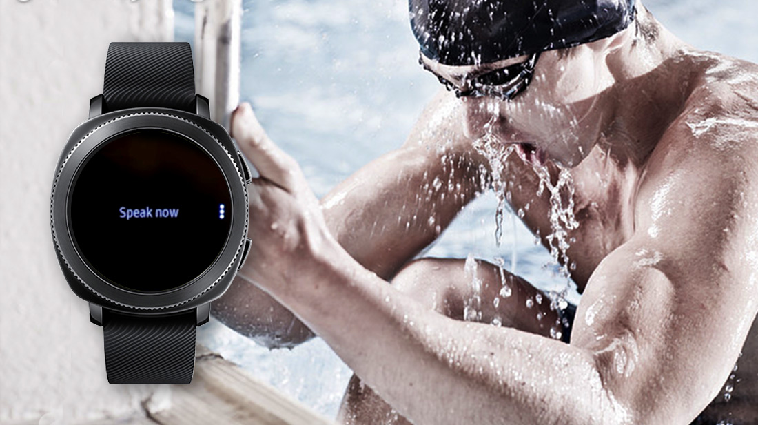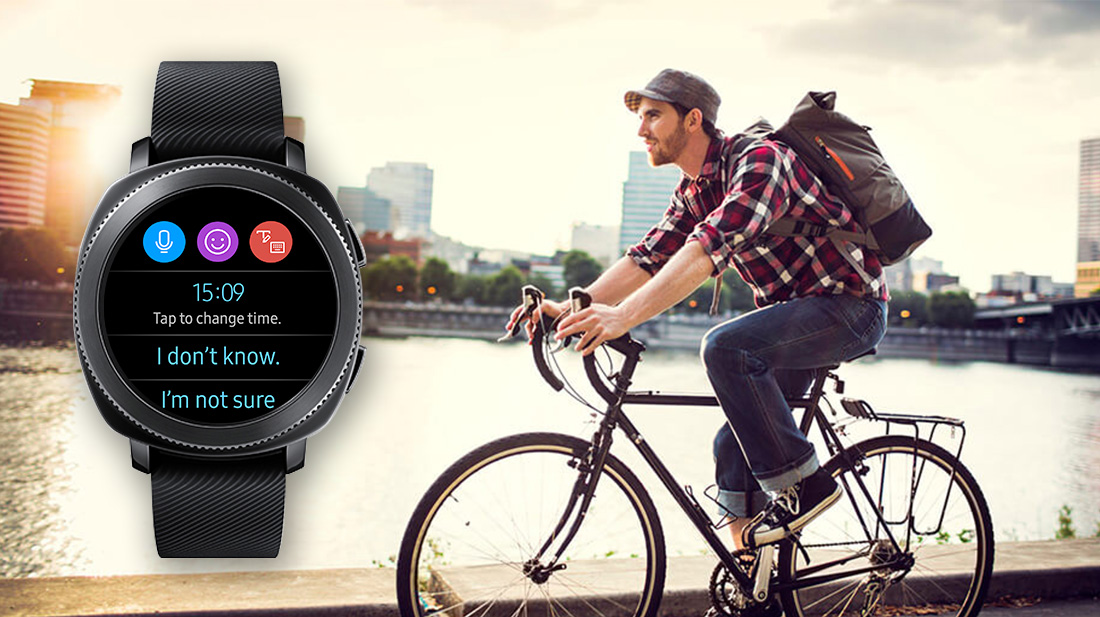 You’ve stepped out of the pool after your morning laps when the Gear Sport buzzes. The watch has 5 ATM water resistance so all options above work just fine, but typing with wet fingers is not much fun. What you can do instead is use voice transcription2 for a quick reply. If you want, you can even send the recording itself.