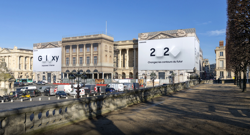 Samsung Galaxy billboards make their debut at Place de la Concorde in Paris.