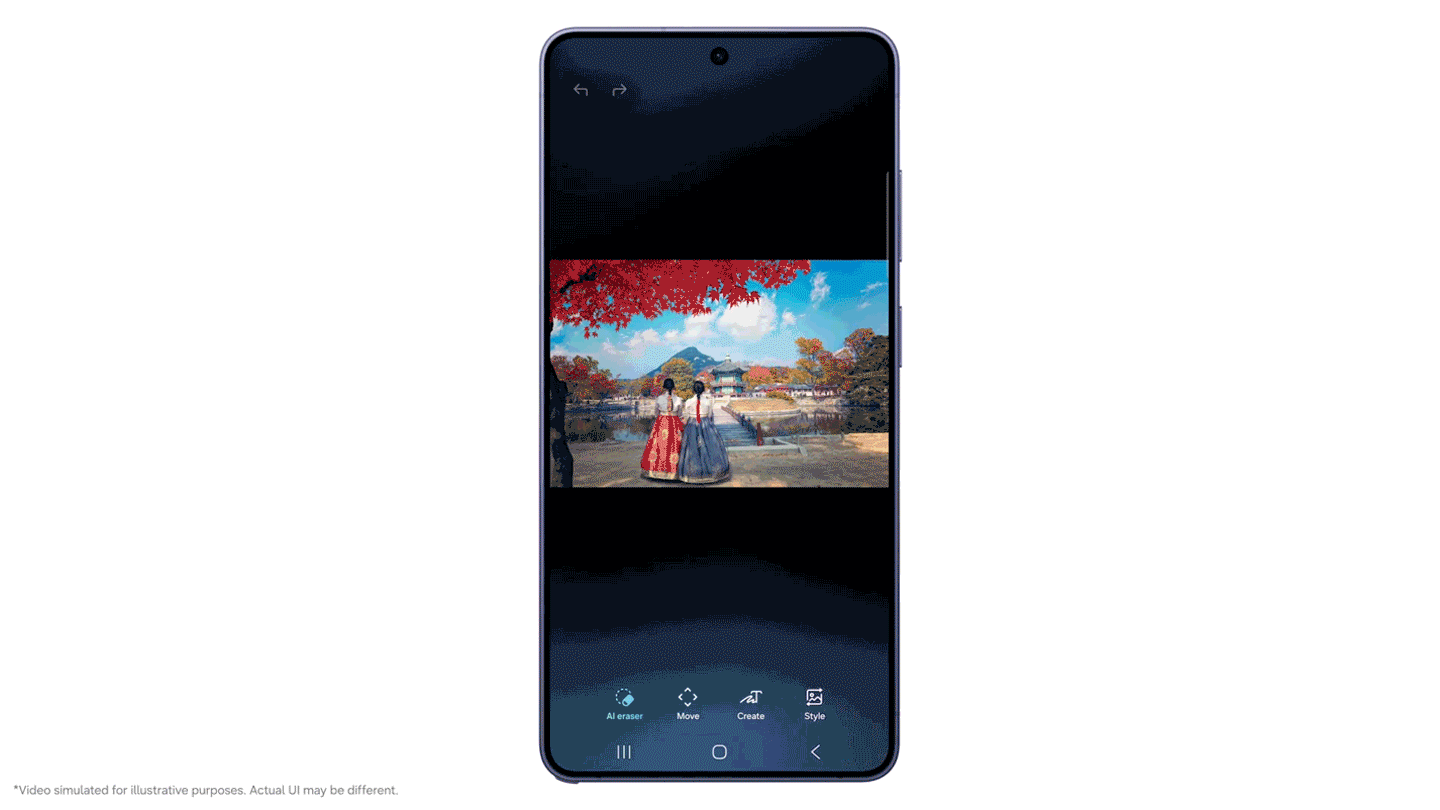 11 Photo Assist may require a network connection and Samsung Account login. Service availability may vary by country, language or device model. Photo Assist may result in a resized photo. A visible watermark is overlaid on the image output upon saving in order to indicate that the image is generated by AI. The accuracy and reliability of the generated output is not guaranteed.