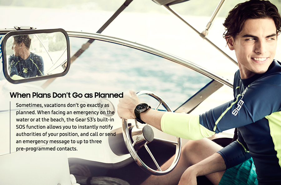 Summer is upon us, which means it’s officially vacation season. Whether you’re planning on hitting the beach or touring a new city, exploring the outdoors or simply spending time with family, the Gear S3’s innovative features make it easy to streamline your summer plans.