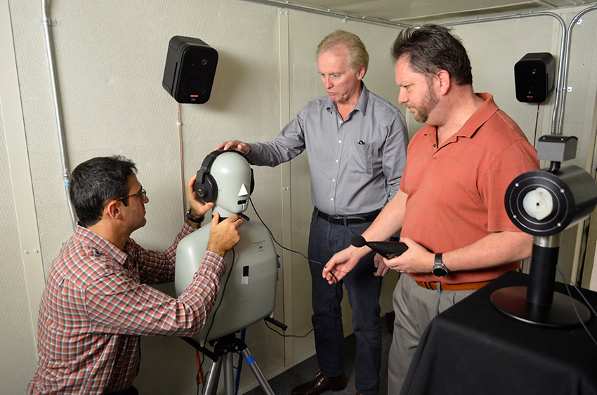 “Good sound is achieved when the headphones accurately reproduce the music without adding any audible distortion or noise to the original sound,” he says.Dr. Sean Olive (middle) testing headphones with his team.
