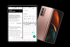 Multi-Active Window on the Galaxy Z Fold2 allows you to respond to emails, review documents, and refine details with your team over chat all from one screen. Capable of running three apps at the same time, Multi-Active Window lets you choose the most convenient layout for your apps to make your multitasking as seamless as possible.