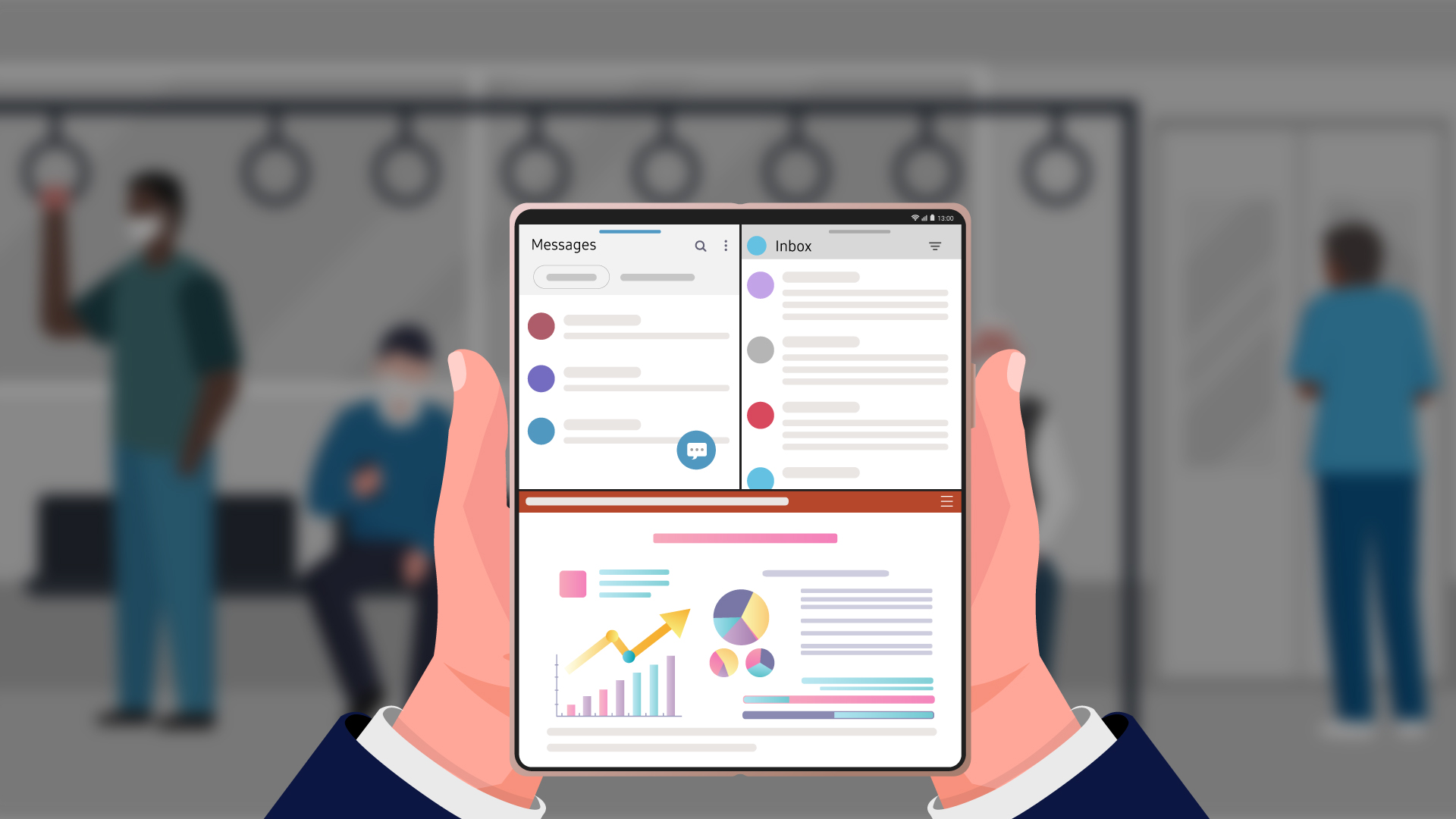 The Galaxy Z Fold2 makes it easy to get multiple tasks done at once. Say you’ve got an important report to deliver: with your Galaxy Z Fold2, you can seamlessly multitask, even on the go.