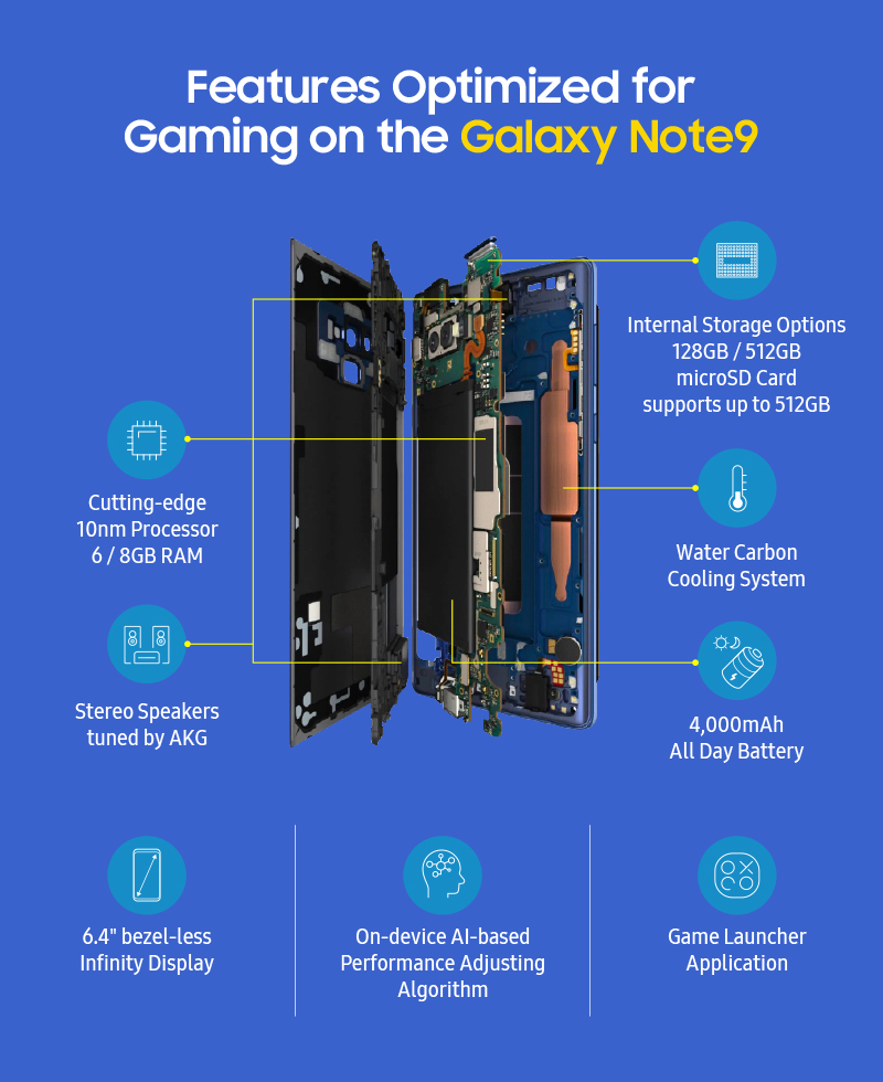 The Galaxy Note9 holds absolutely nothing back when it comes to speed, power and performance because today’s users need a smartphone that allows them to get the most out of work and play. That’s why Samsung Electronics packed its latest flagship device with innovations in software and hardware that not only take mobile productivity to the next level, but mobile gaming as well.