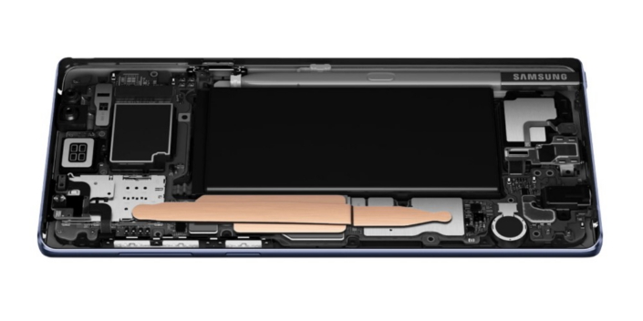 Samsung enhanced the system for the Galaxy Note9 with a heat pipe, or ‘thermal spreader’, that’s three times larger than the Galaxy Note8’s, and dissipates heat more effectively. The company also increased the system’s internal water intake to foster greater heat absorption, and incorporated an enhanced carbon fiber TIM (thermal interface material) that transfers heat from the processor to the thermal spreader with 3.5 times greater efficiency, thus boosting thermal conductivity.