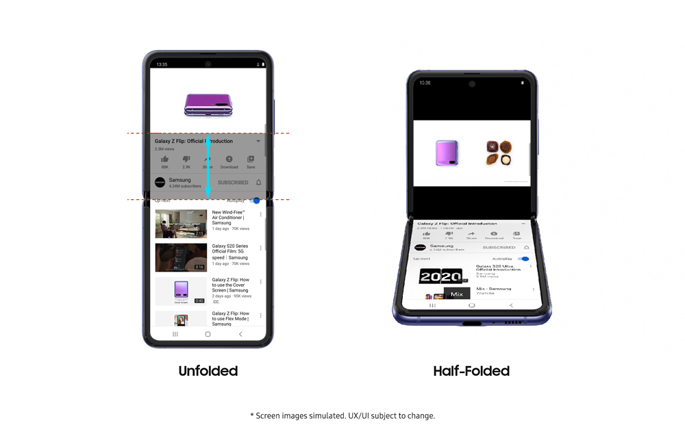 Working together, Samsung and Google’s engineers redesigned the app from the operating system level. This included integration of the Android Support Library, making it easier to bring Flex mode to more third-party services. Through the collaboration, Samsung has worked closely with the Android developer community to drive innovation for foldable devices. Galaxy Z Flip users can download the Flex mode-optimized YouTube app from the Google Play Store starting from April 22 and enjoy the enhanced features that come with the latest update.