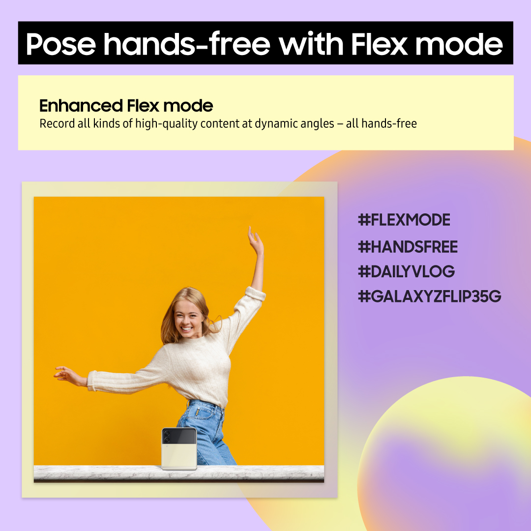 Tailored to complement the creative use of smartphone cameras in capturing unique digital contents for social media, Galaxy Z Flip3 5G makes the whole process more streamlined than ever before. Packed with an array of functionalities, Z Flip3 5G allows you to capture and share dynamic content hassle-free.
