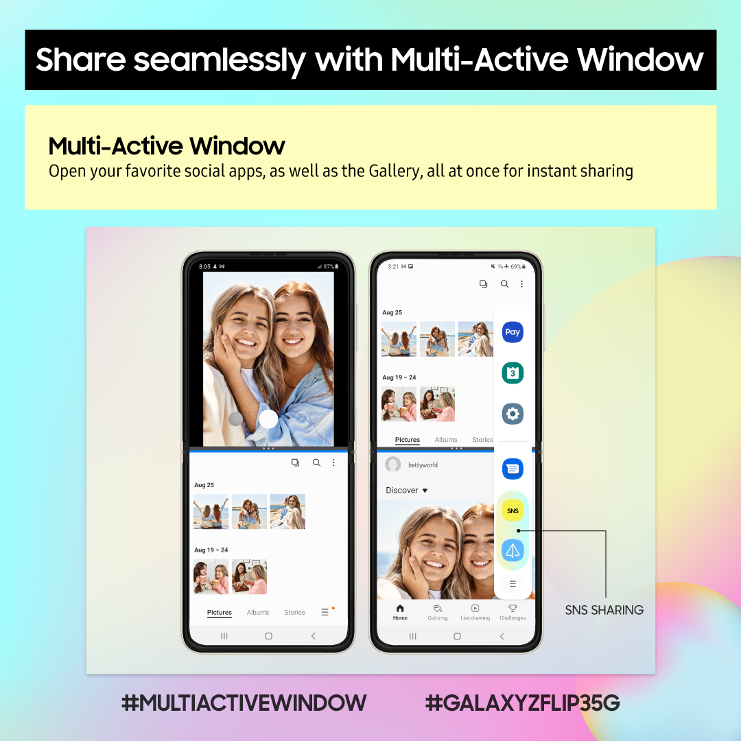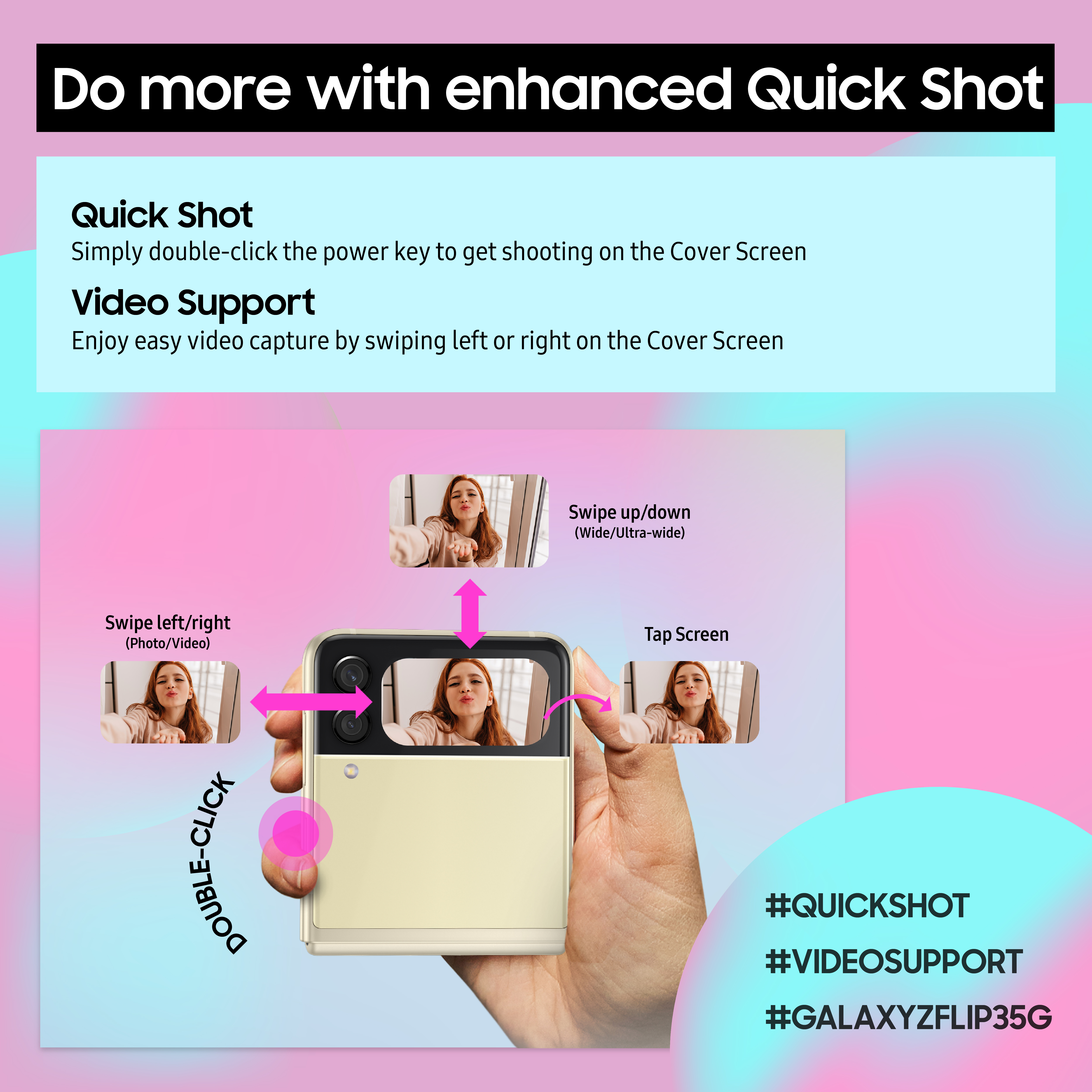 From its enhanced Quick Shot to seamless sharing, Galaxy Z Flip3 5G makes capturing and sharing unique content to your social feeds easier than ever before.