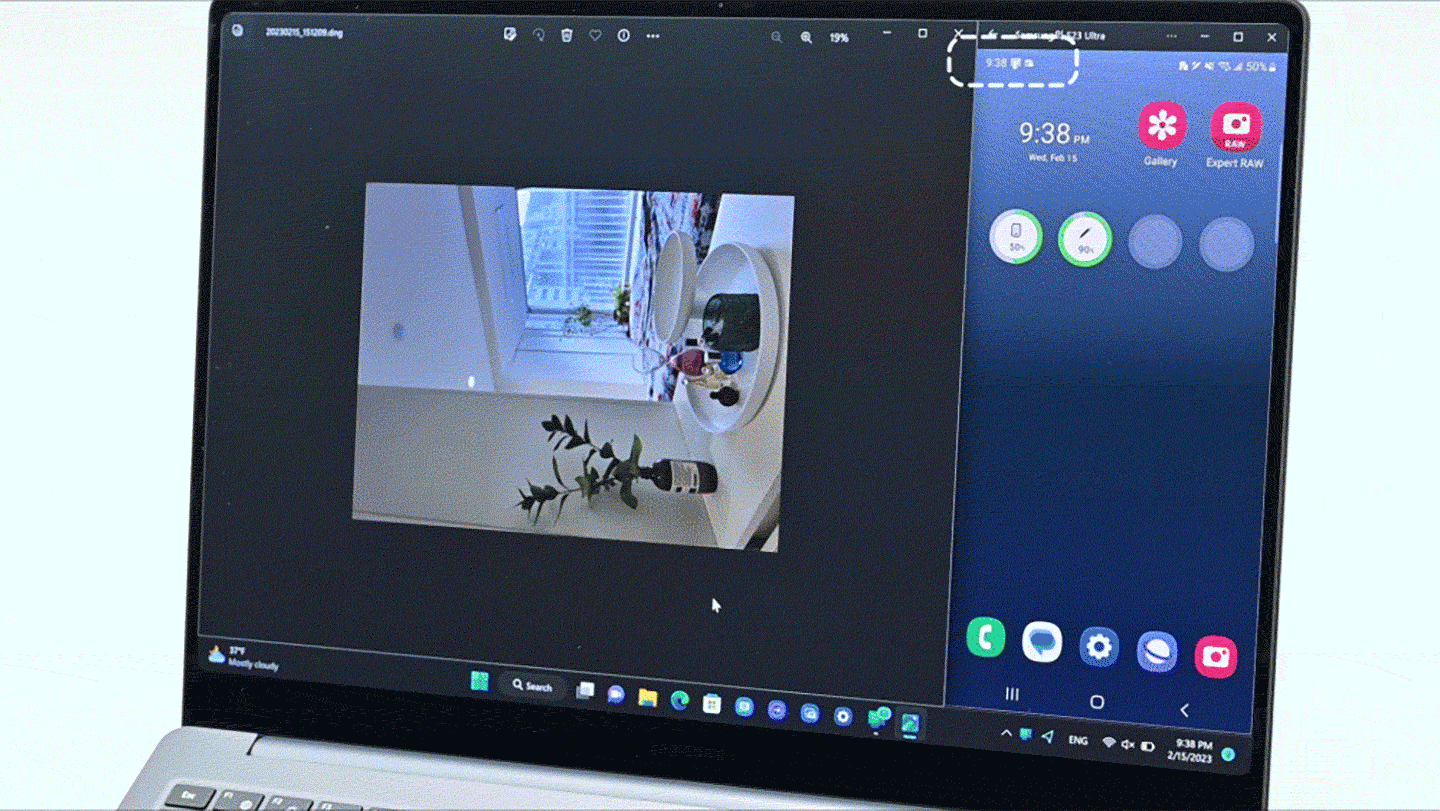 Transfer photos taken with the Expert RAW app from the Galaxy S23 Ultra to the Galaxy Book3 Pro 360 for seamless editing and photo enhancing.