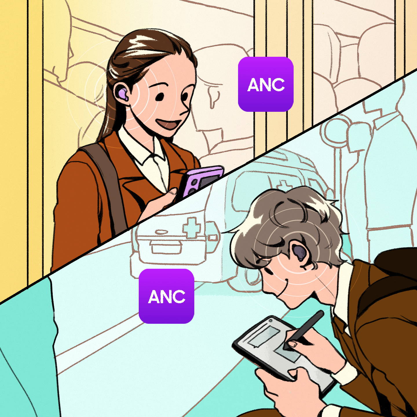 The Galaxy Buds2 Pro offer a powerful active noise cancellation (ANC) capability to help you stay connected and focused when chatting with co-workers during your morning or evening commute. The enhanced ANC features, improved by 40% compared to the previous model, ensure you only hear what you want to hear while cancelling out unnecessary noise. Thanks to the improvement in ANC, Galaxy Buds2 Pro can assist with various aspects of your daily life, allowing you to stay connected and tuned in wherever you may be.