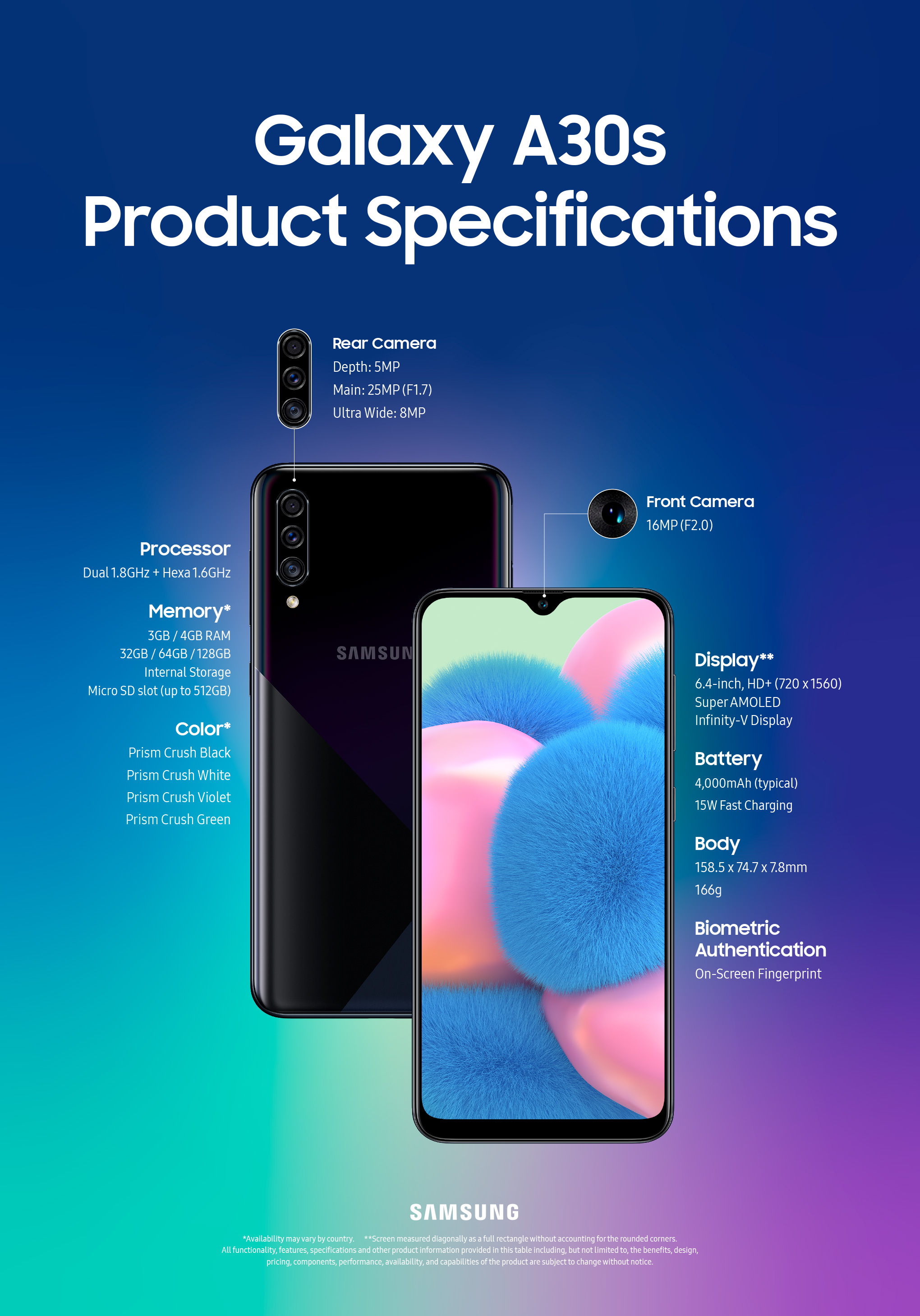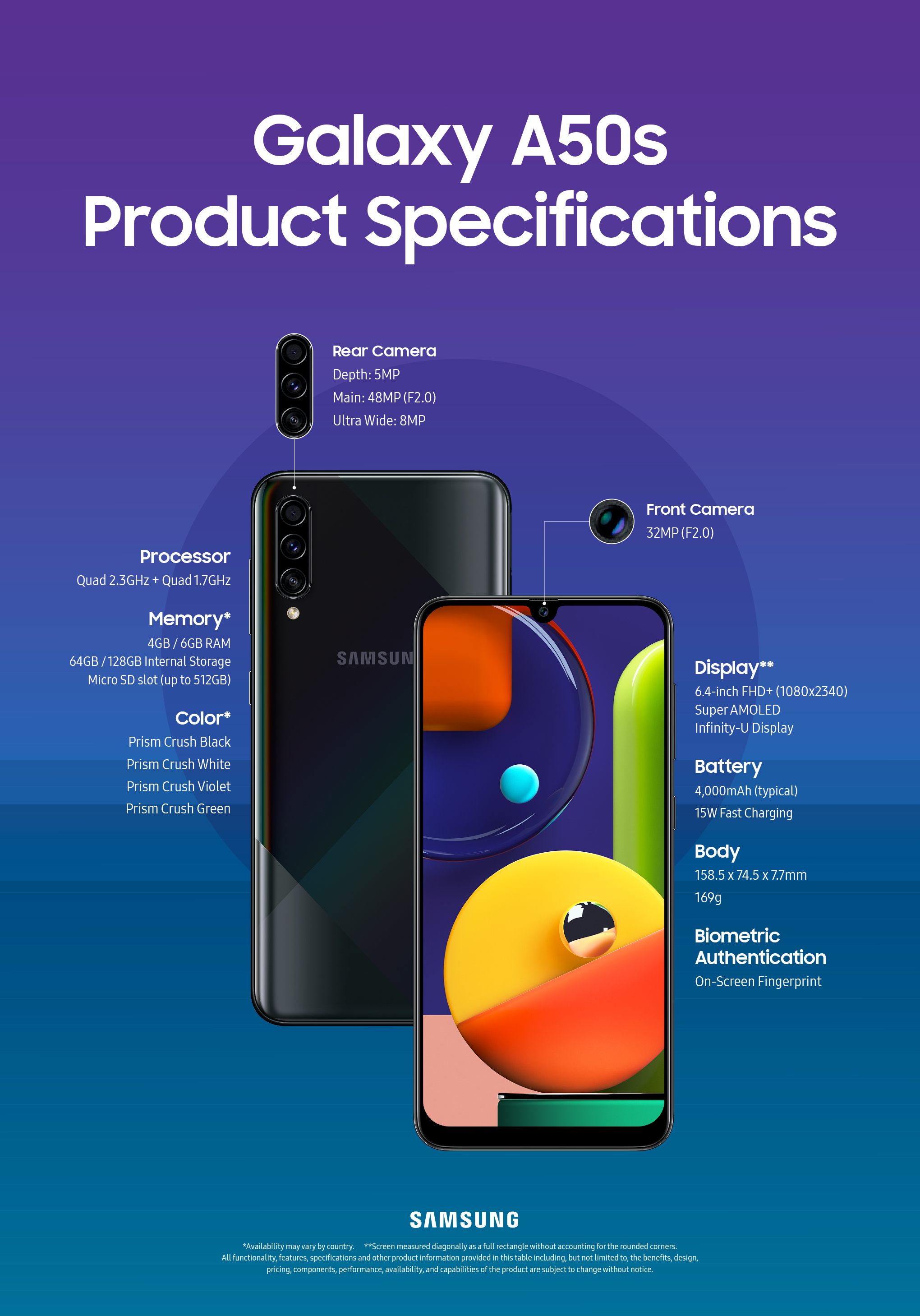Check out the full specs of the Galaxy A50s and A30s below.
