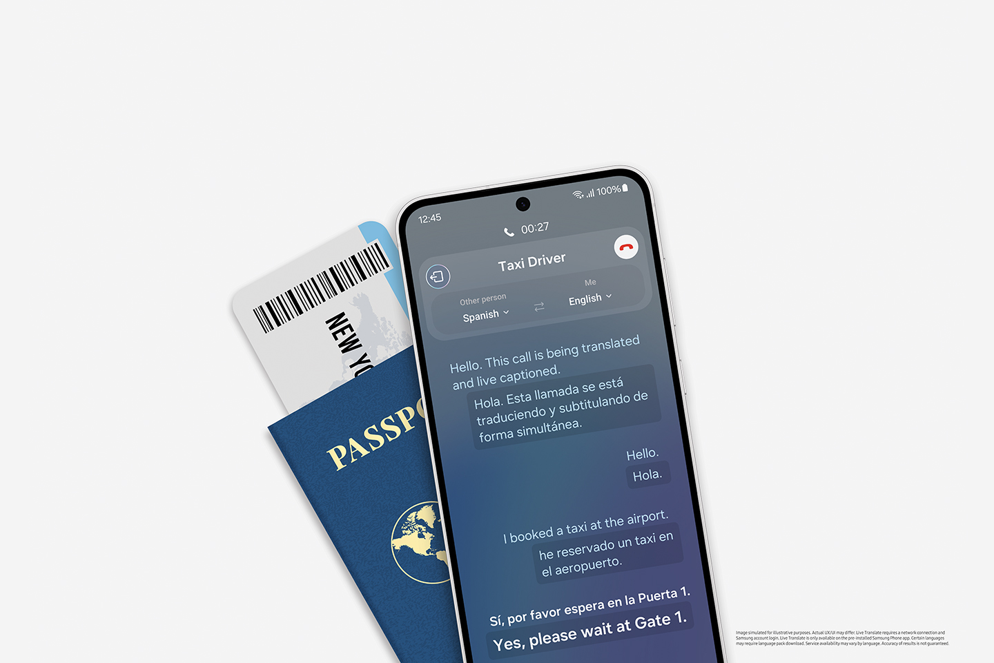 11 Live Translate feature for Call Assist does not require a network connection. Calls require a network connection to activate Live Translate. Samsung Account login required. Live Translate is only available on pre-installed Samsung Phone apps and some third-party apps. Service availability may vary by language or region. Certain languages may require language pack download. Accuracy of results is not guaranteed.