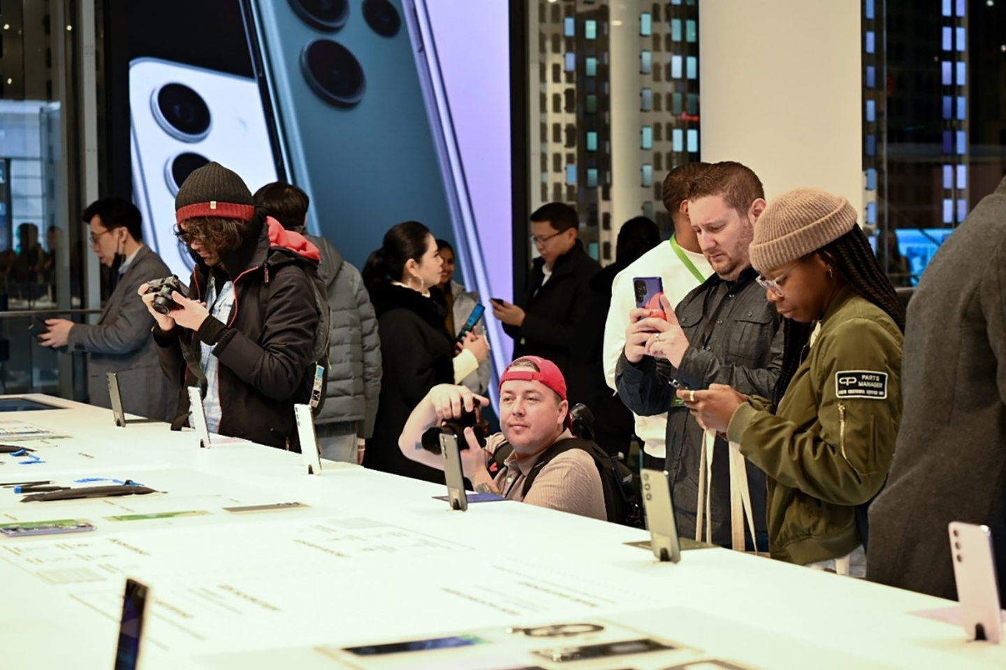Galaxy fans are welcomed as they Galaxy Experience Space, eager to get their hands on the latest products.