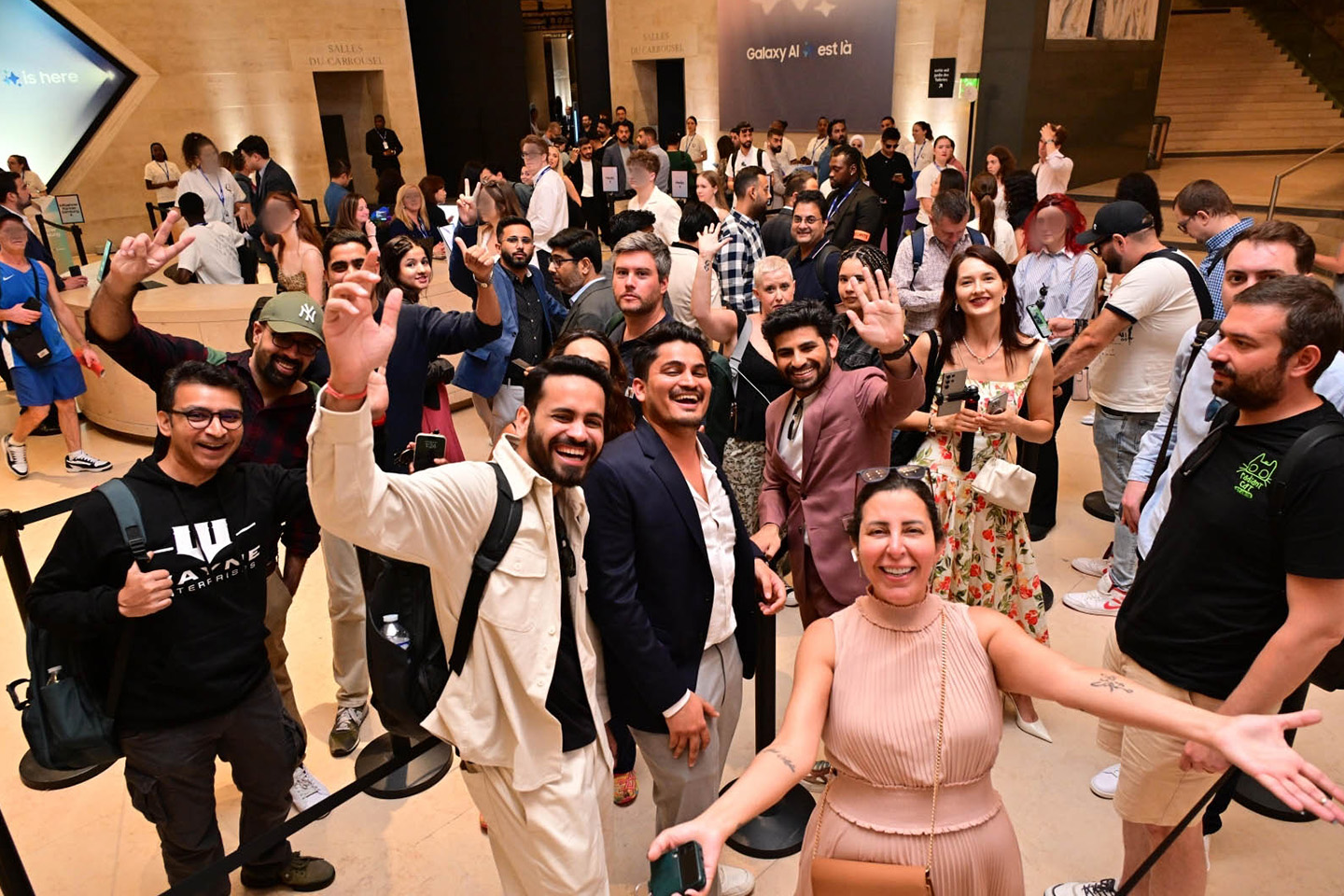 Attendees were greeted by Galaxy Unpacked 2024 banners around the venue where an inverted glass pyramid reminiscent of the Louvre Museum stands.