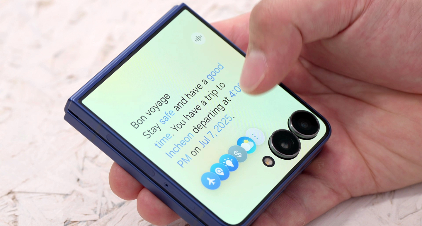 In today’s fast-paced world, relying on AI has become second nature. The Galaxy Z Flip7 takes those interactions further — offering a more intuitive, seamless experience through One UI 8, optimized for the expanded FlexWindow and advanced multimodal AI technology.