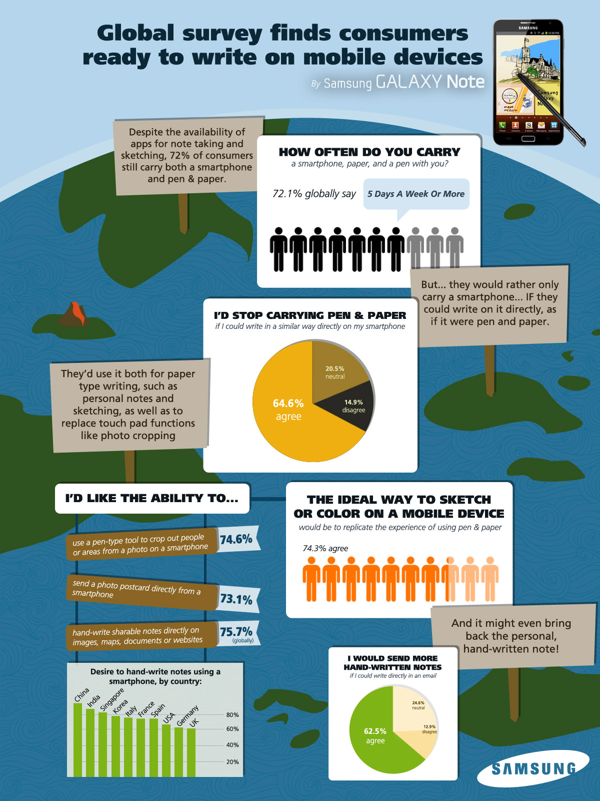 The survey, which included the responses of 5,000 smartphone users across 10 nations, found strong demand from global consumers for a smartphone that allows them to write and draw with a pen-style device with the same level of ease as write on paper. It also asked consumers about opinions on use-case scenarios where this type of device would be preferred.