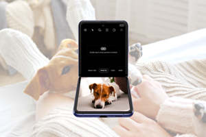 The Quick selfie feature uses the device’s powerful rear cameras to create high-quality self-portraits. Double click the power button when the phone is folded and the cover display will transform into a selfie viewfinder. You can then click the volume button to capture a shot. And if you are taking a groupie with your friends, you can tap on the cover display to switch to the Ultra Wide lens.