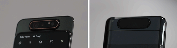 But the best part about the Galaxy A80 is that the range of camera effects aren’t just limited to the camera on the back of the phone. The A80 employs a slide-out panel on top of the phone that automatically extends upward and flips the camera around to face the user when they switch to the front-facing camera mode, allowing the powerful camera array to be used for selfie-mode photos too. The sliding module fitting seamlessly into the back of the phone when lowered, making the motor-driven raising and lowering of the camera array very sleek.