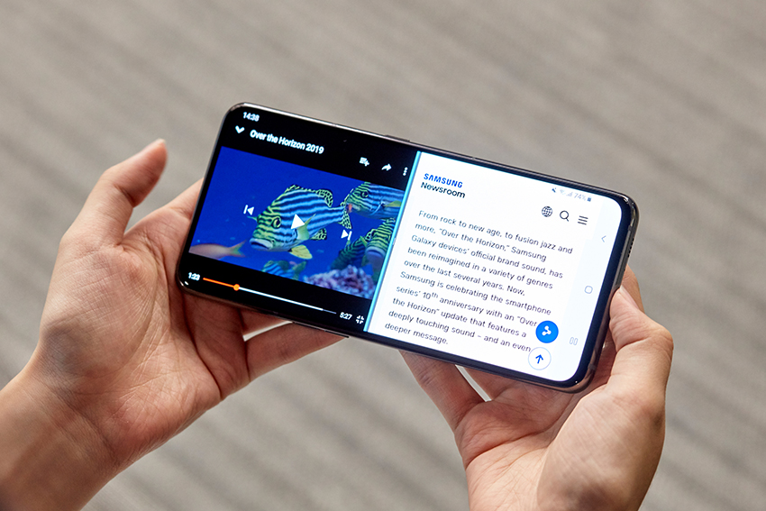 Watching videos on the notchless screen produced a certain cinematic satisfaction, and we found that the extra screen real estate provided by the lack of a ‘forehead’ at the top of the phone improved usability across the board. The phone’s Smart Multitasking feature***, for instance, worked well on the Galaxy A80’s bigger screen. Doing things like checking a map on one half of the screen while texting a friend to tell them where we were on the other half was very handy. The picture-in-picture mode was also great for when we were watching something, but still wanted to be able to do other things on the phone.