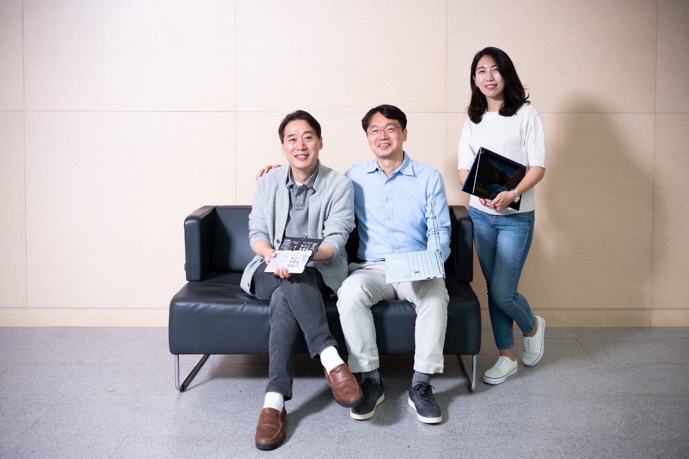 ▲ (From left) Engineers SungHoon Kim and Jehwan Lee, who developed the battery for the Galaxy Book series, and product planner Hyemi Sung