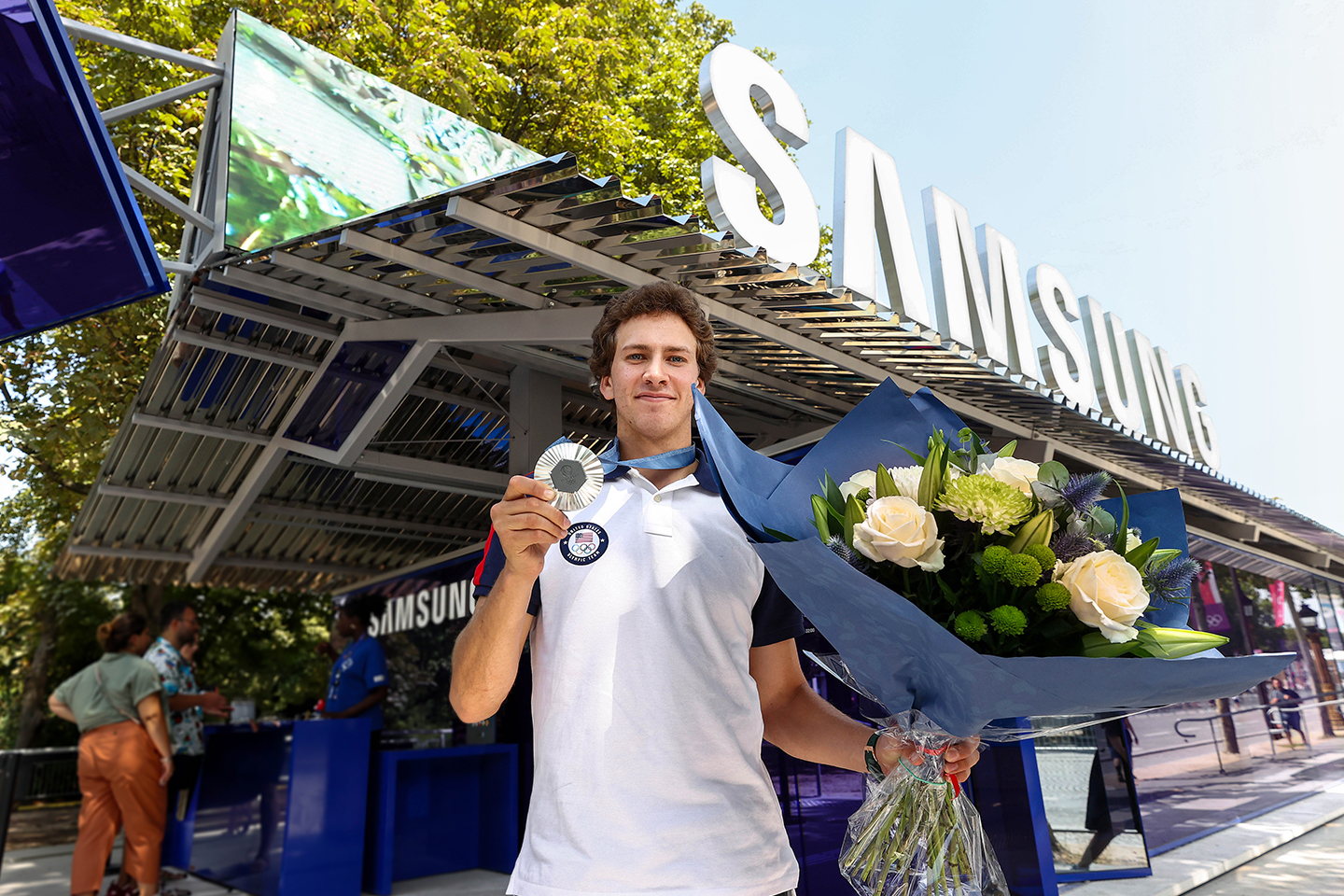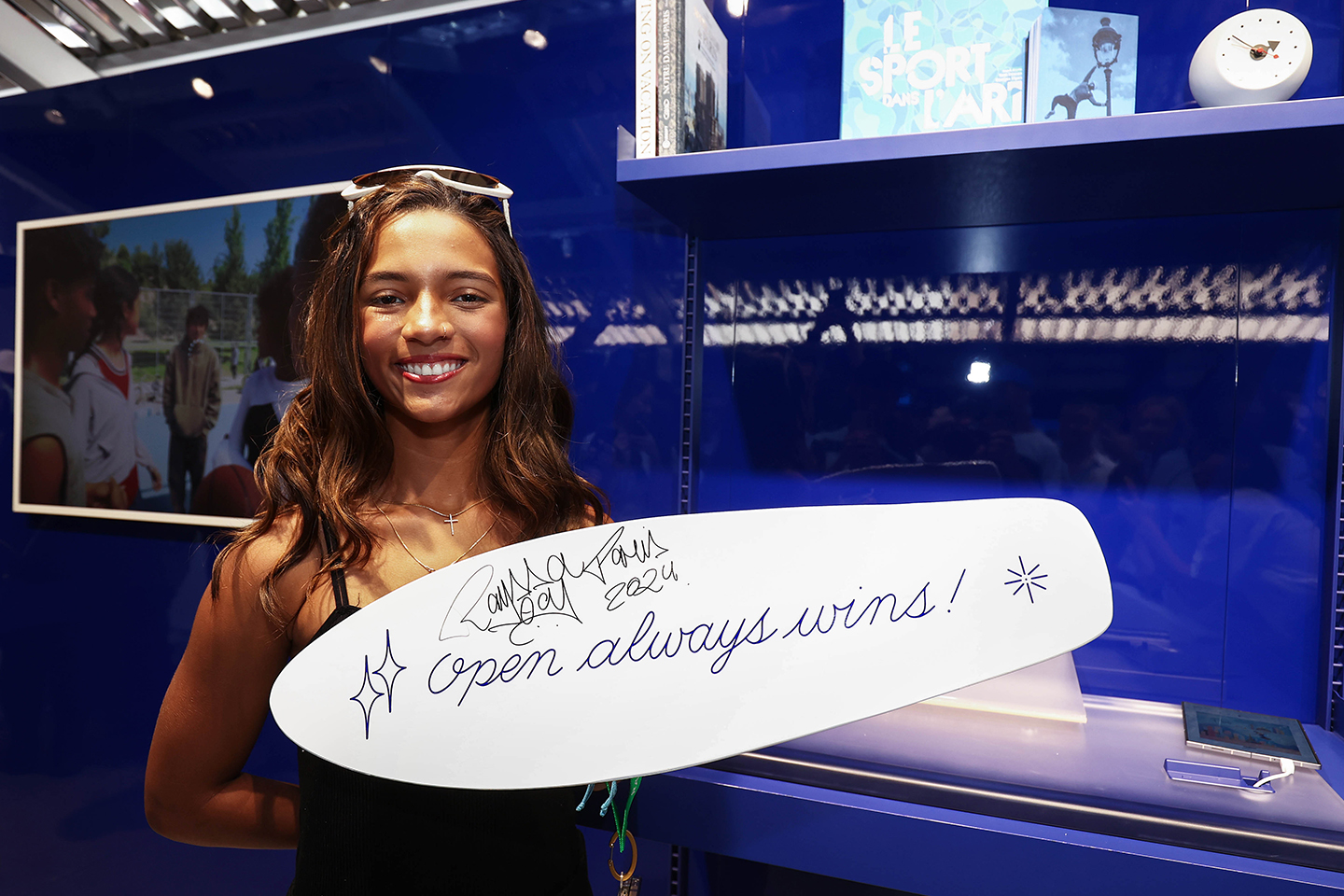 Fresh from their medal-winning performances at the Olympic Games Paris 2024, Team Samsung Galaxy athletes Rayssa Leal (Skateboarding, Brazil) and Jagger Eaton (Skateboarding, USA) surprised fans at the Olympic™ rendezvous @ Samsung | Square Marigny. Fans gathered as the athletes explored the space, posed for pictures and left their mark with a signed board and helmet — now on display at the space throughout Paris 2024.