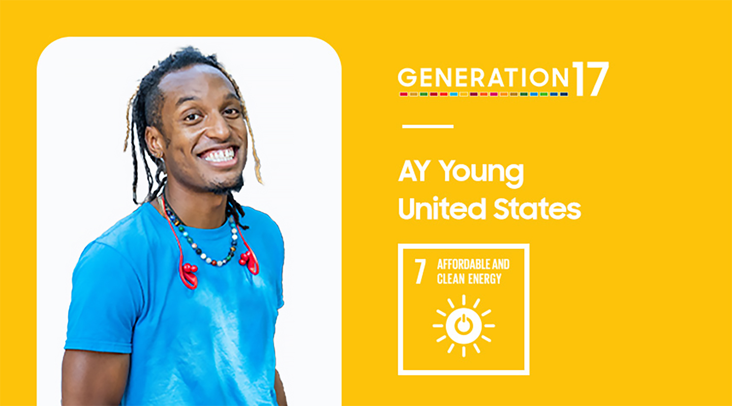 AY Young is a member of Generation17, a partnership between Samsung and the United Nations Development Programme (UNDP), empowering young people around the world who are contributing to the Global Goals.
