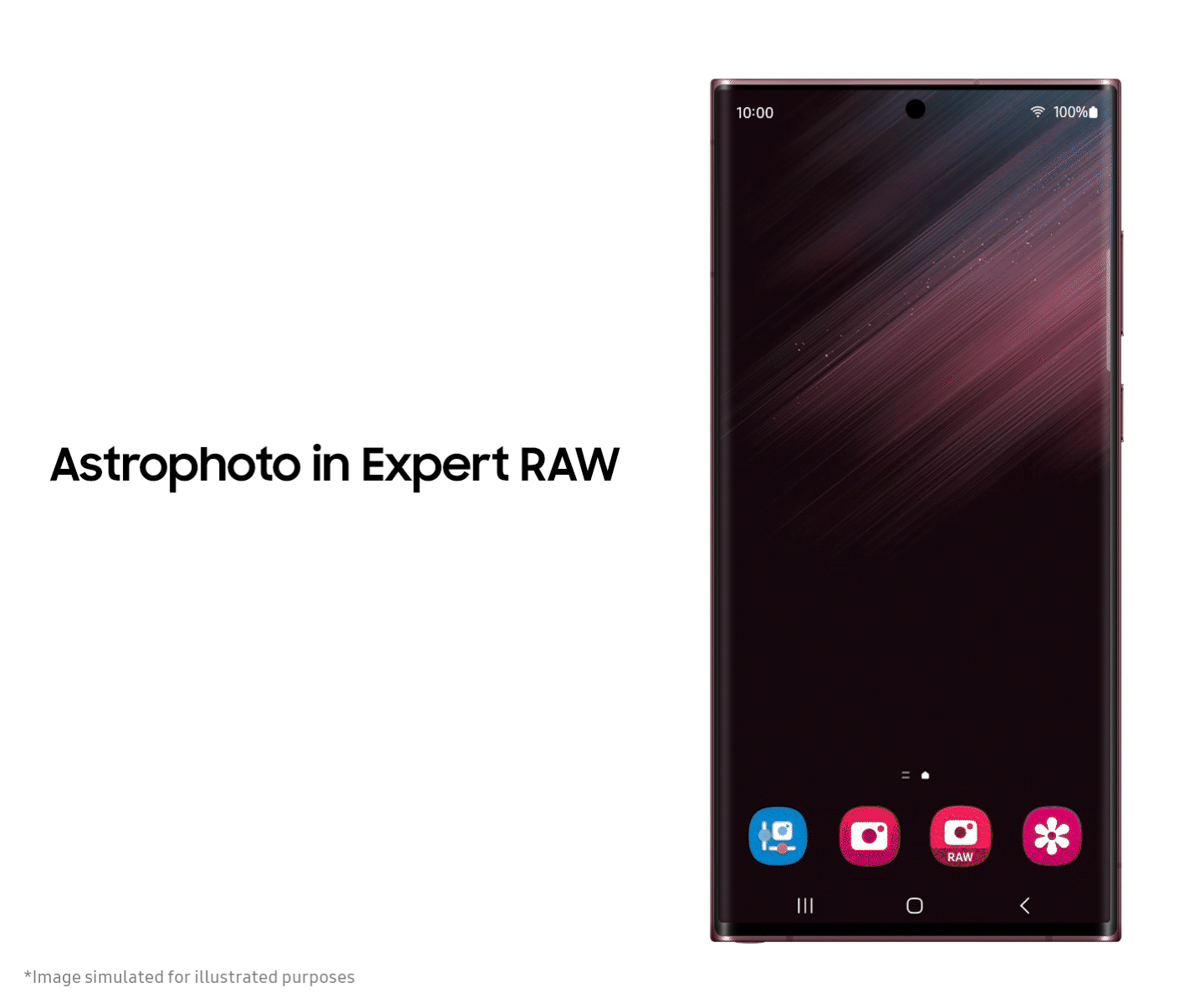 The Expert RAW elevates the S22's already robust night photography capabilities with a powerful Astrophoto feature. This brand-new feature lets star gazers and outdoor enthusiasts take clear and beautiful photos of constellations and dark sky activity.