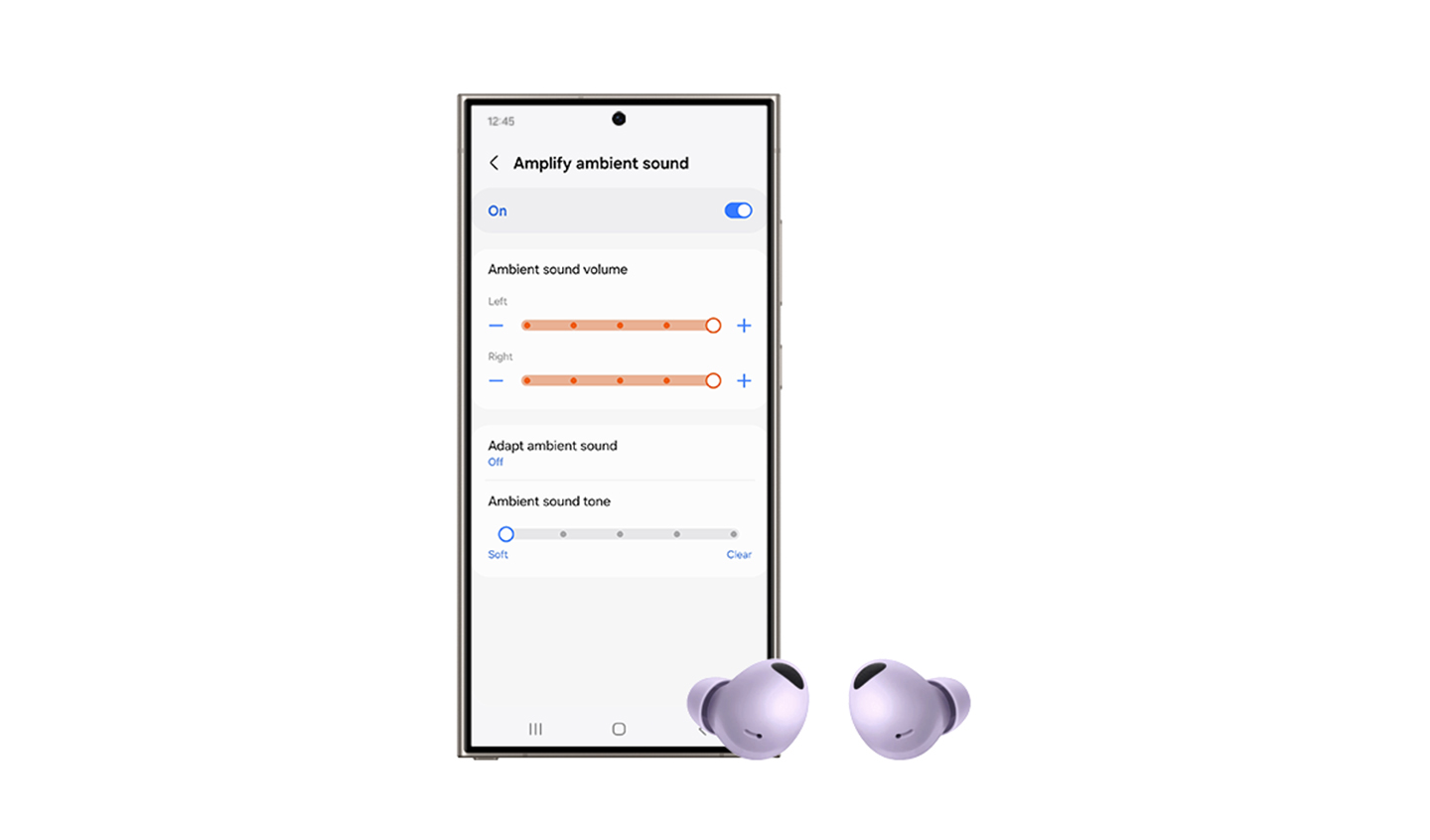 5 Additional two levels can be activated in the Laboratory – Ambient Sound menu under Earbuds settings in the Galaxy Wearable app.