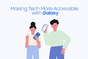 At Samsung, we design meaningful, human-centric innovations that offer people greater control and more enriching experiences in their daily lives. Through a variety of Galaxy features – from simple, easy devices gestures to auditory assistants and vision enhancements – we strive to open access to technology that works for people of all abilities.