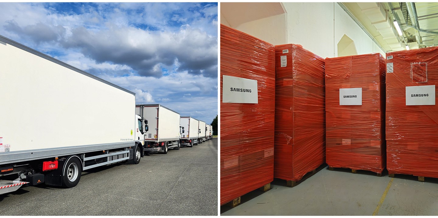 ▲ Nearly 17,000 Samsung Galaxy Z Flip6 Olympic Edition arrived in Paris 2024 Olympic and Paralympic Village via a dedicated and specially coordinated transport program, to be ready for distribution to all competing athletes at Paris 2024. Photo Credit: Samsung.