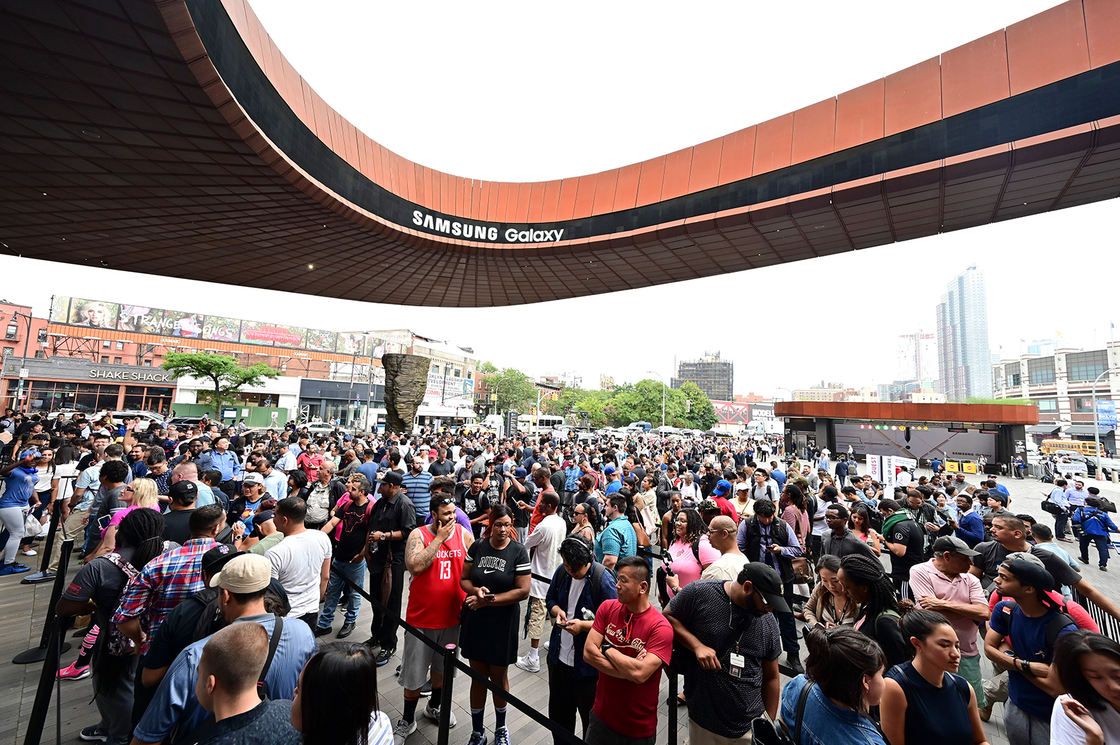 Anticipation grows as Unpacked attendees line up outside of Brooklyn’s Barclays Center before the start of the show.