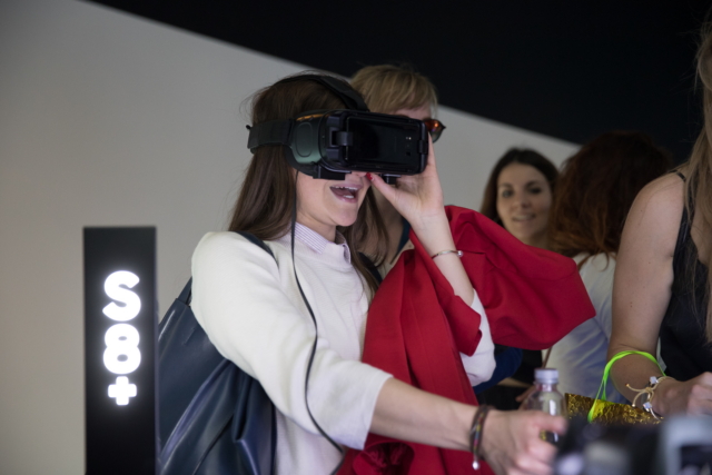 More than a phone. Guests at Unconfined: The Galaxy S8 Design during Milan Design Week find out about the Gear VR with controller.