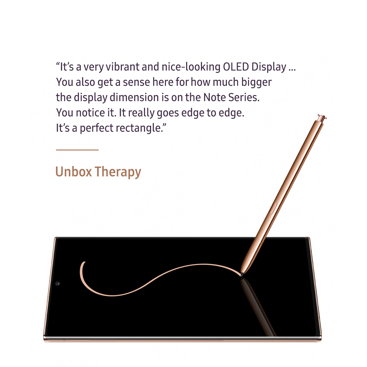 "It’s a very vibrant and nice-looking OLED Display...You also get a sense here for how much bigger the display dimension is on the Note Series. You notice it. It really goes edge to edge. It’s a perfect rectangle."
