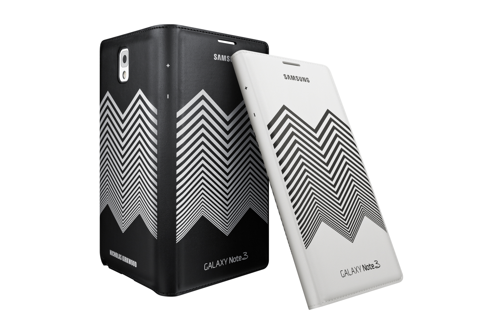 16 September 2013, London, UK - Samsung Electronics and renowned London-based shoe designer Nicholas Kirkwood today announced they will launch a range of exclusive accessories for Samsung’s latest mobile device, GALAXY Note 3, at London Fashion Week (LFW). The accessories will feature Nicholas Kirkwood’s signature Chevron Pattern and be available in two colours: White and Black, and Black and White. These exclusive accessories will be available to buy around the world from various online and high street retail channels. They will be the first in a series of accessories to be launched by Samsung and Nicholas Kirkwood, featuring the same chevron design, with other GALAXY products to follow.