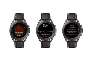 The electrocardiogram function works by analyzing the heart’s electrical activity via a sensor on the Galaxy Watch3 or Galaxy Watch Active2. Simply open the Samsung Health Monitor app when you are seated comfortably, and ensure the watch is fitted firmly to your wrist. Next, rest your forearm on a flat surface and lightly place a fingertip from the opposite hand on the top button on the smartwatch for 30 seconds. The app will then measure your heart rate and rhythm, which will be classified as either a Sinus Rhythm (a normal, regular heartbeat) or AFib (when the heart beats irregularly)5.