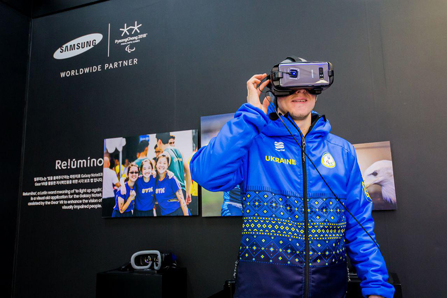 A Paralympian experienced how the vision-enhancing Relúmĭno application works in conjunction with Samsung Gear VR – powered by Samsung Galaxy Note 8 - while visiting the Samsung Paralympic Showcase.