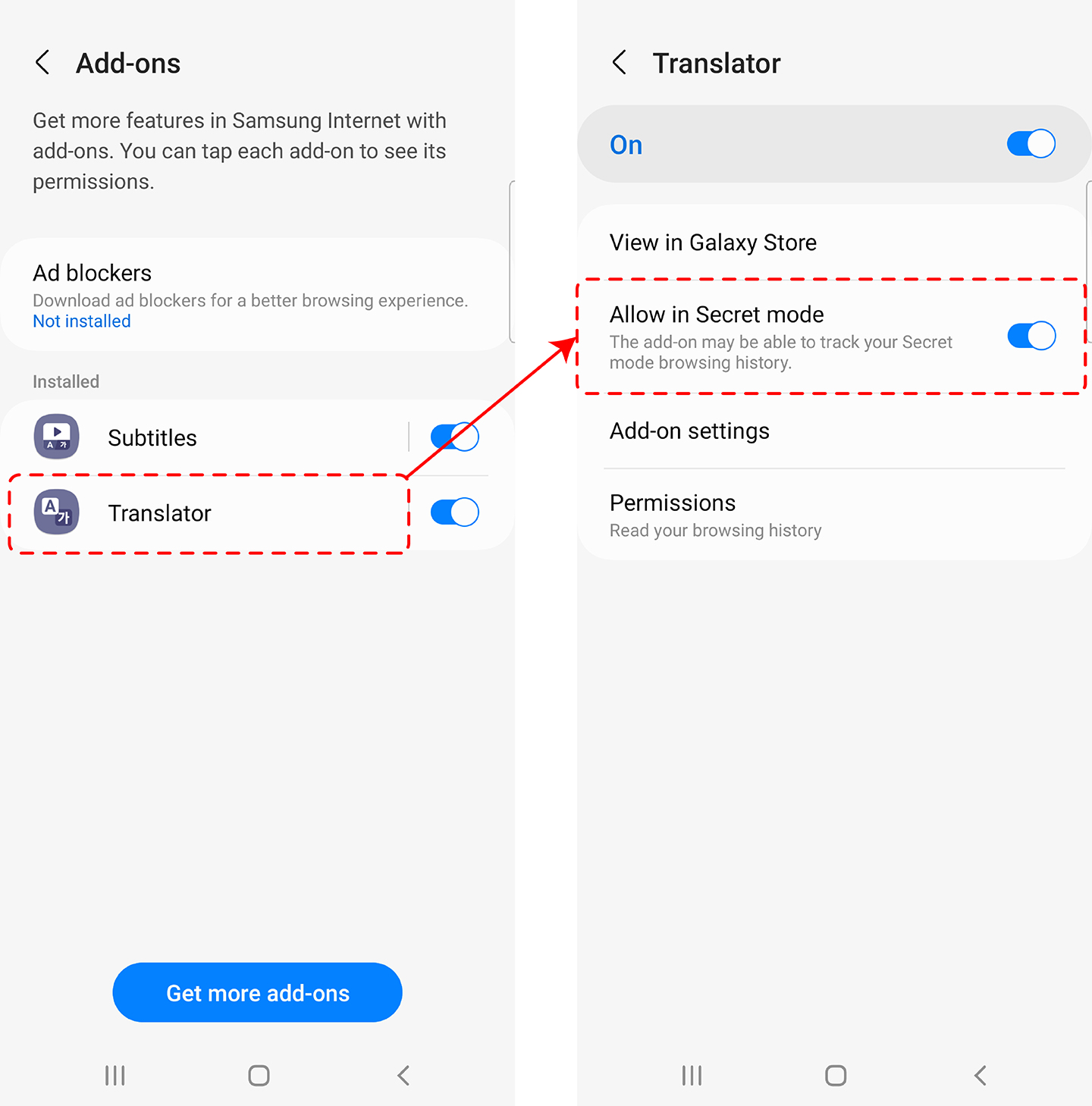 Add-ons can now be activated while users are in Samsung Internet’s Secret mode.