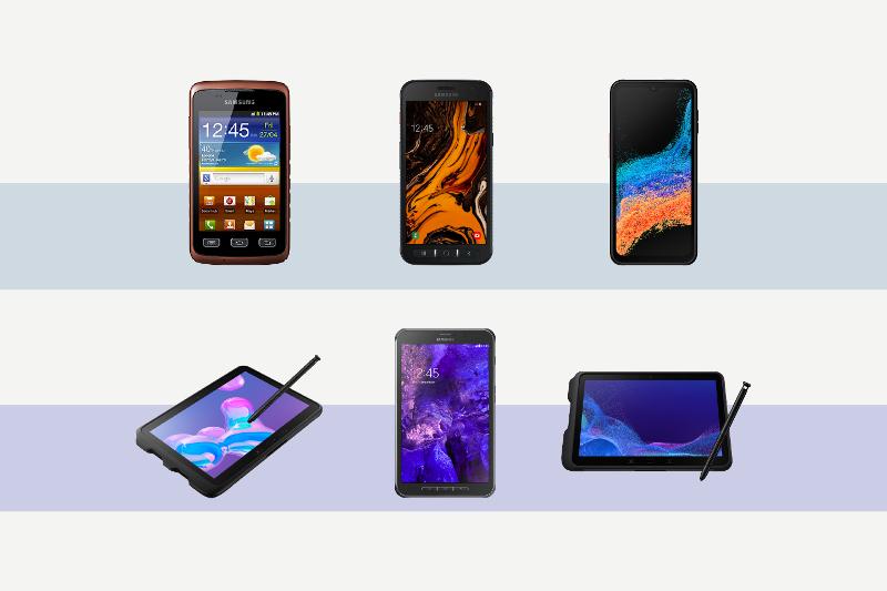 1 Durability improvements are based on comparison with previous models (Galaxy XCover6 Pro and Galaxy Tab Active4 Pro), with added testing for resistance to workplace sanitizers. Actual performance may vary depending on usage conditions and environmental factors.