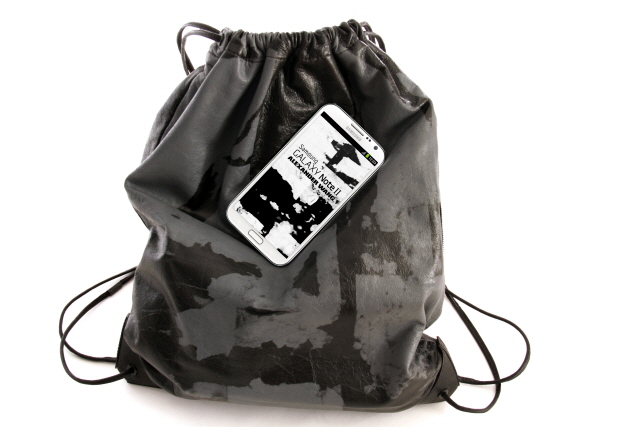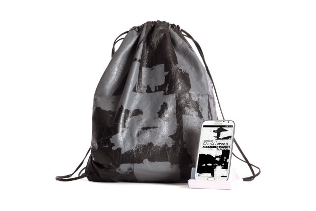 At the start of the year, Wang engaged a group of close friends, stylists, photographers, and others to create “doodles” – an image, pattern, or a photo – on their Samsung GALAXY Note II device. Through the active idea-capturing and immediate-sharing benefits, the celebrated New York designer then curated these sketches into one collectively-inspired final print for a unisex drawstring lambskin backpack.