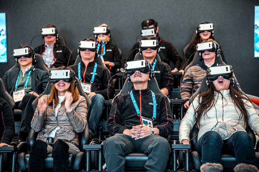 The giant Winter Ride, which is just one of the six VR experiences visitors can try, features dozens of rotating chairs that simulate the motions of charging down an alpine slope.