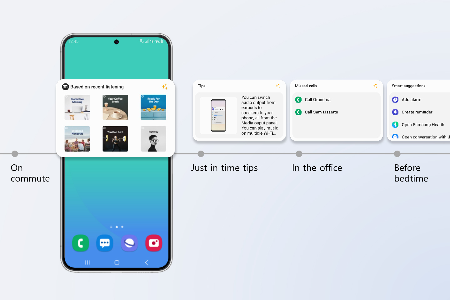 Samsung has long been focused on giving Galaxy users greater control over their devices by customizing various user interface aspects. One UI 5.1 delivers several exciting new features that allow people to fine-tune nearly every aspect of the mobile experience – from appearance, to communications, actions, and more. Samsung introduced new features that can understand how devices are used and make recommendations accordingly. For example, the new dynamic weather widget analyzes current conditions and creates a custom design that reflects the climate. Modes and Routines have expanded to enable custom wallpapers, ringtones, touch sensitivity and fonts that can personalize specific activities for even more convenience. One UI 5.1 also improves the Smart suggestions widget7 by adding the ability to recommend Spotify8 tracks and playlists based on users’ activities, such as music for road trips or relaxing.