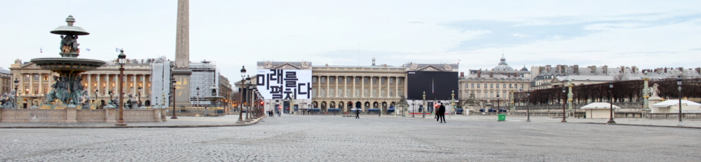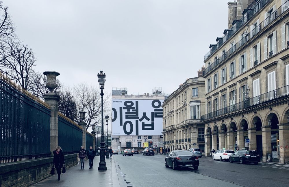The billboards – which have been installed in Paris’s famous Place de la Concorde – pair beautiful imagery with text written in Hangeul, the Korean letters. When translated, the intriguing messages “미래를 펼치다” and “이월 이십일” are revealed to say, “The future unfolds” and “February twentieth.”