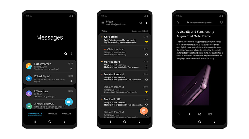 Visual comfort is especially important when it’s dark, which is why Samsung built a customizable Night Mode into One UI. Easily accessible and incorporated across the entire interface, Night Mode, once enabled, adjusts the screen’s tone, brightness and contrast to offer users a more focused and comfortable viewing experience.
