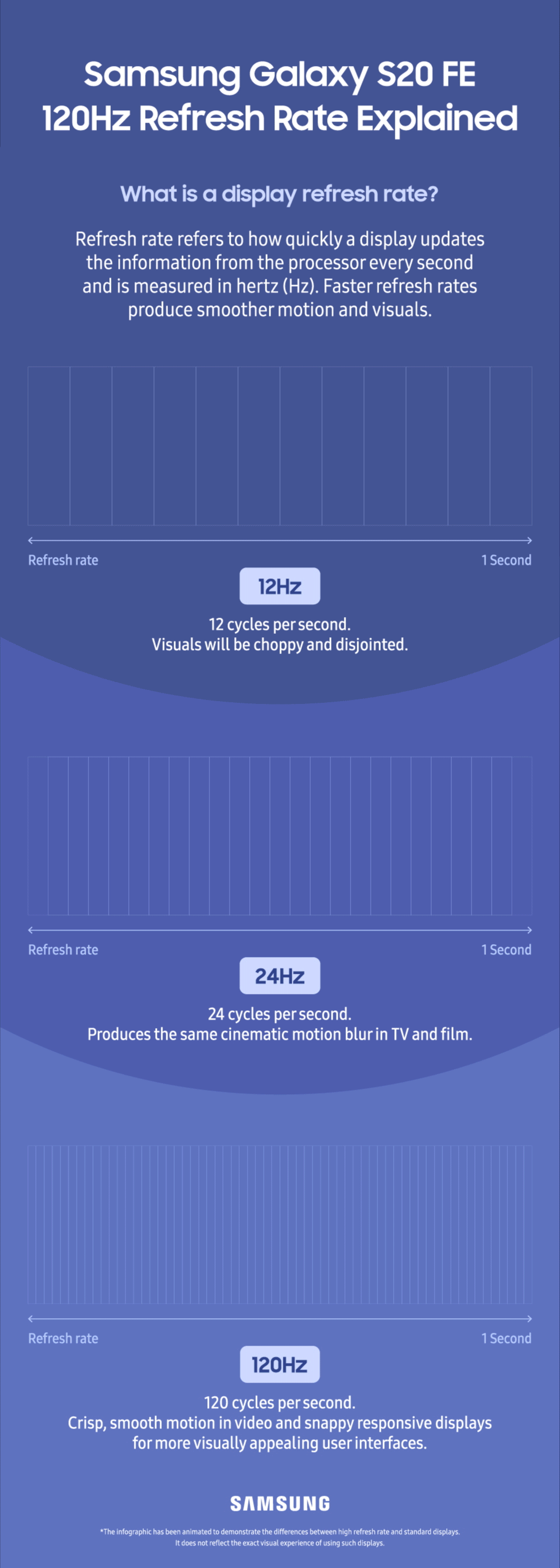 Samsung is at the cutting-edge of this emerging trend, featuring 120Hz displays on the Galaxy S20 series, Galaxy Note20 Ultra, and Galaxy Tab S7/S7+. Equipped with a 120Hz Super AMOLED Infinity-O Display, Galaxy S20 FE is the latest to join Samsung’s roster of high refresh rate devices. Here’s a closer look at how these next-gen displays work and what makes them a fan favorite feature.