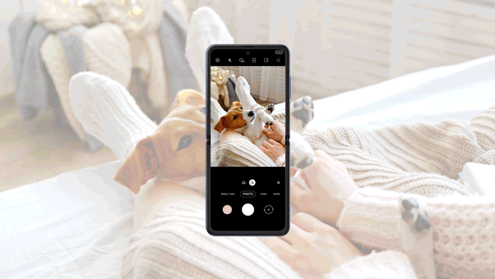 Building on the device’s innovative form factor, we are introducing a new software update to make it easier for you to shoot from higher and lower angles with the Galaxy Z Flip. With just a double tap, you can switch the camera’s preview window from the top to the bottom half of the device when it is in Flex mode, making it simpler for you to capture everything from dramatic low-angle action videos to vibrant top-down food photos.