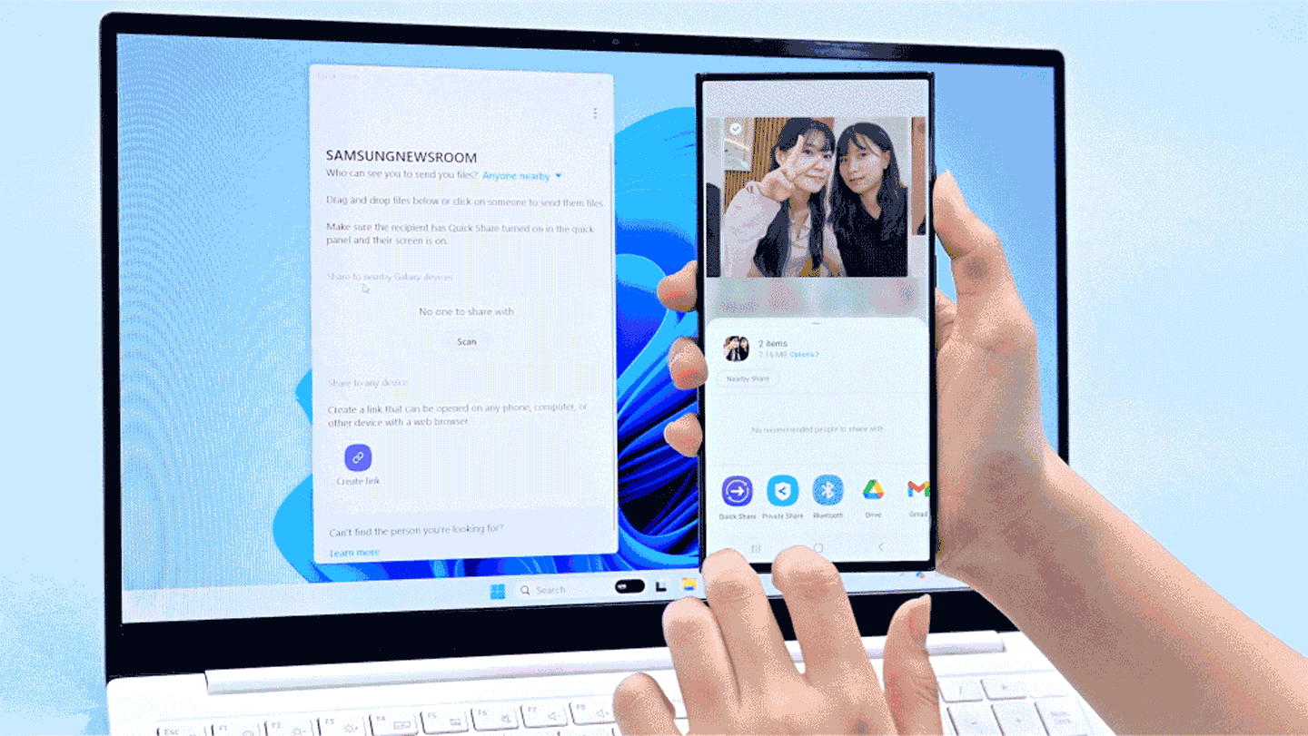 Sharing files from a Galaxy mobile device to a Galaxy Book with the Quick Share feature.
