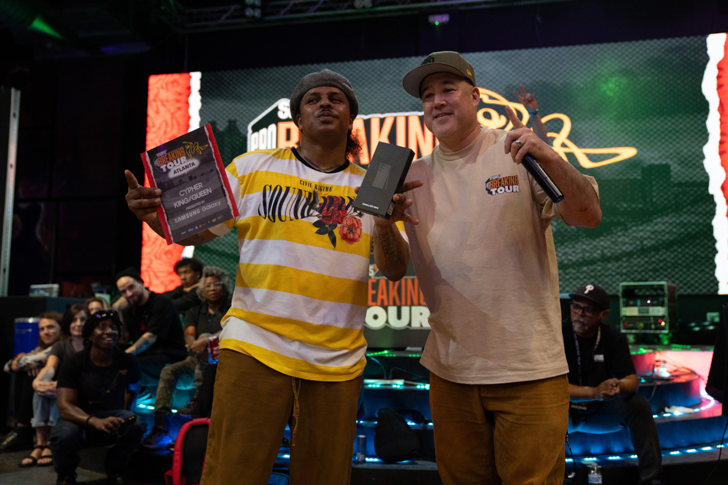 Samsung also awarded an “Open Award” plaque and a Galaxy S24 Ultra to King Quic for his cyphering performance. In breaking, a cypher is when B-boys and B-girls form a circle and enter the middle one by one to show their freestyle dancing. Cyphers have been around ever since breaking began, and they’ve always been a place where breakers can express themselves.