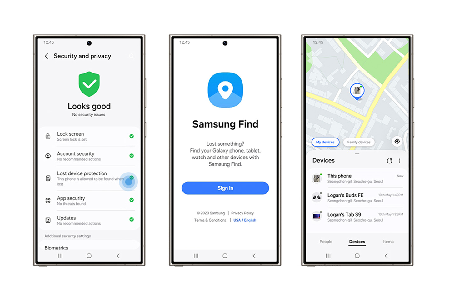 Once Find My Mobile is enabled, Samsung Find allows you to locate, lock and even erase your device’s data to create an access lockdown. You can find your device even if it’s not connected to a mobile network, as long as it’s turned on. And through Samsung Find, it’s not only your Galaxy phone you can hunt down – but also your Galaxy Buds, tablets, watches and other devices.